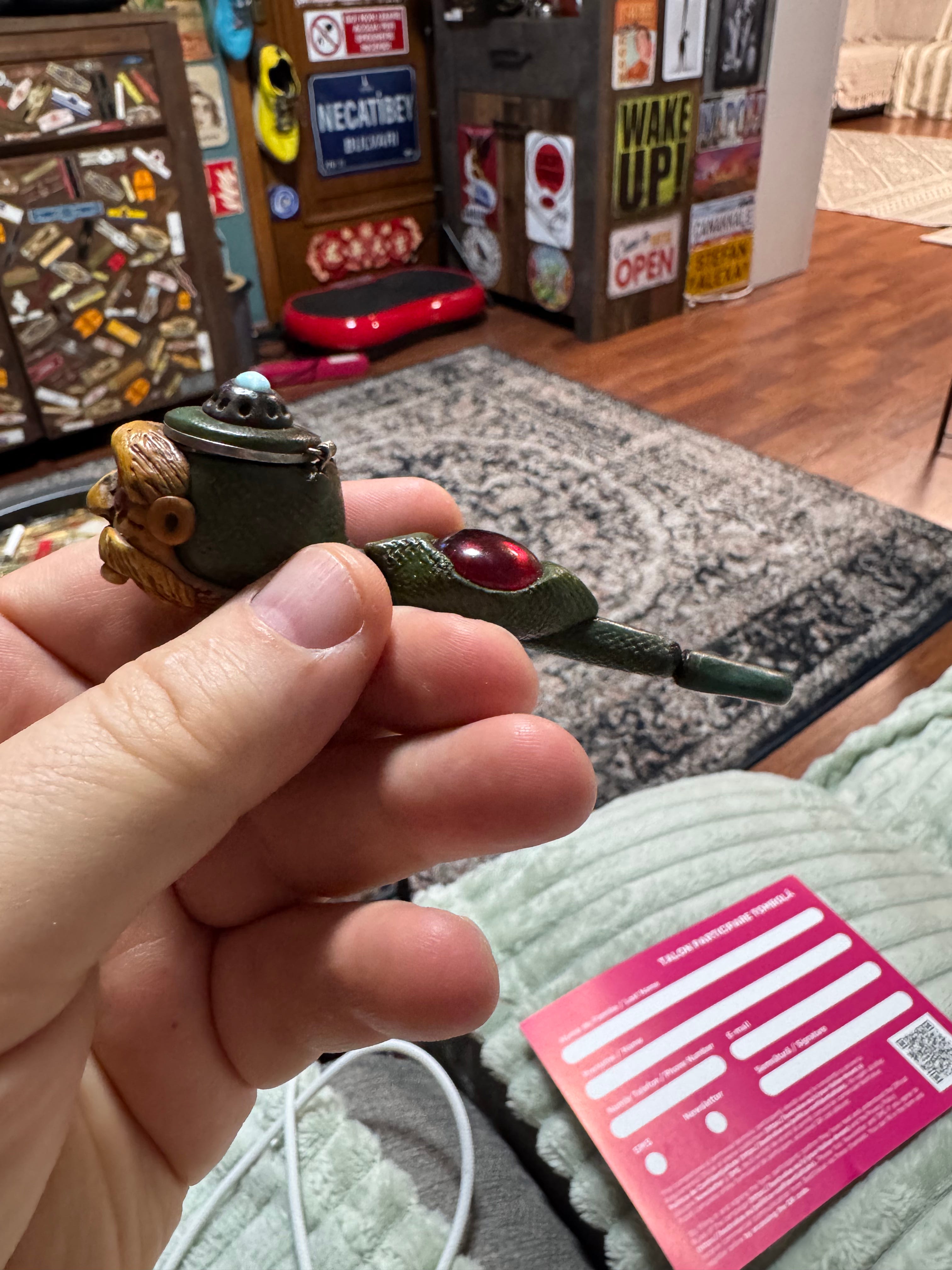 Un prieten, mare amator de chilipiruri, ca și mine, mi-a dăruit o pipă mică, dar absolut senzațional manufacturată. Nu fumez pipă, doar trabuc și țigări normale, dar m-am bucurat de ea.