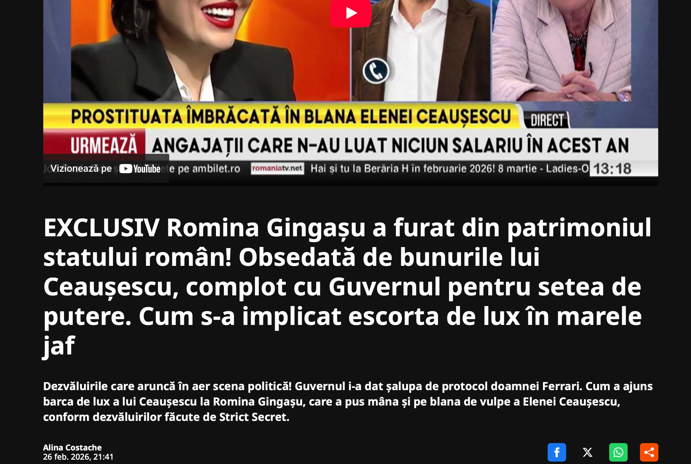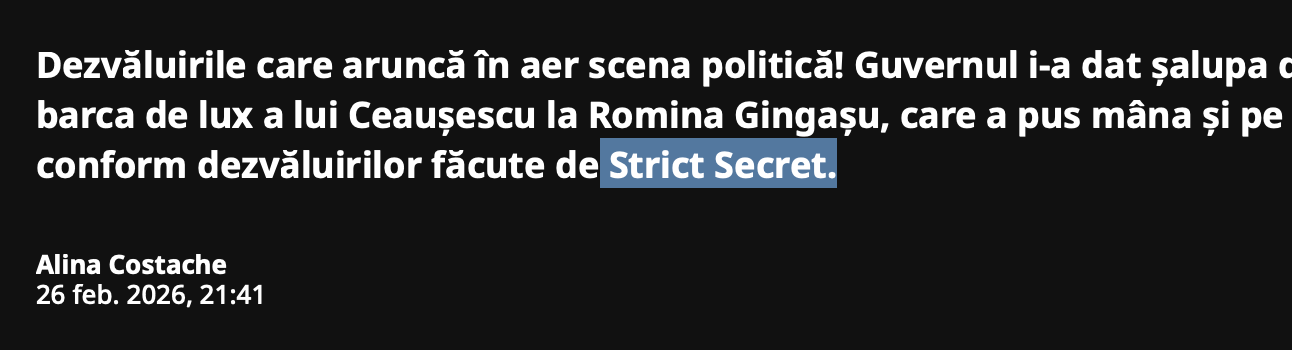 Incredibil, dau joi pe Strict Secret exclusivitatea cu barca lui Ceauşescu furatǎ de Romina Gingaşu. EXCLUSIVITATE, da?