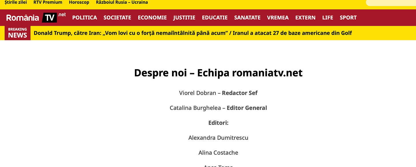 Nu de alta, dar ma pot ocupa si de traseistul acarian Vio Dobran, ce rata copios cand era la Realitatea, sau de frustrata fara talent jurnalistic de la Impact, Catalina Burghelea, care a ajuns editor general la Romaniatv.net.