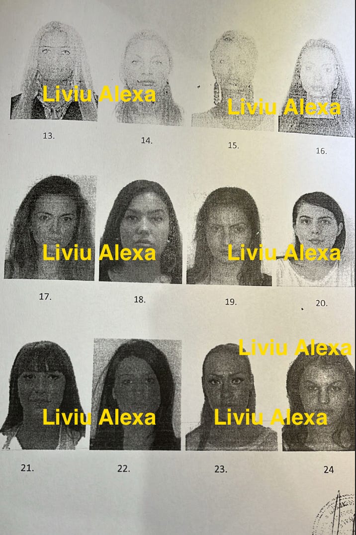 Dar ce dau eu azi e cireasa din dosar: celebra plansa cu cotofenele ce isi vindeau pasarica si alte gaurici. In ordinea numerelor de pe chiloti, veti vedea ca la numarul 24 este Gingasu Romina Mirela, nevasta miliardarului Piero Ferrari, pozata cu mufarina de prostituata, asa cum se fac dosarele de la Moravuri, Romina, “femeie de afaceri”, activista pentru drepturile femeilor, hahahahaha, si cu asta, basta!