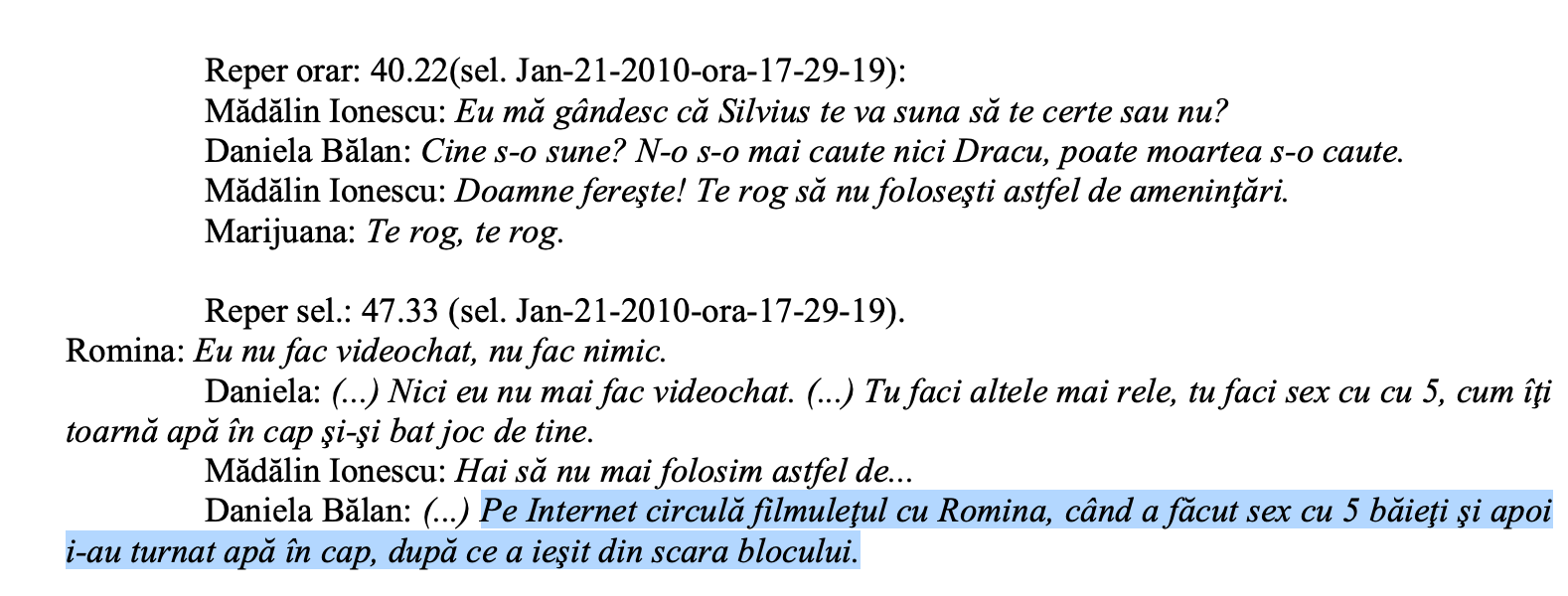 Interesant este, dupǎ cum vedeți, cǎ minora Romina Gingaşu nu contestǎ existența filmulețului, ci doar atacǎ mai tare cu alte acuzații.