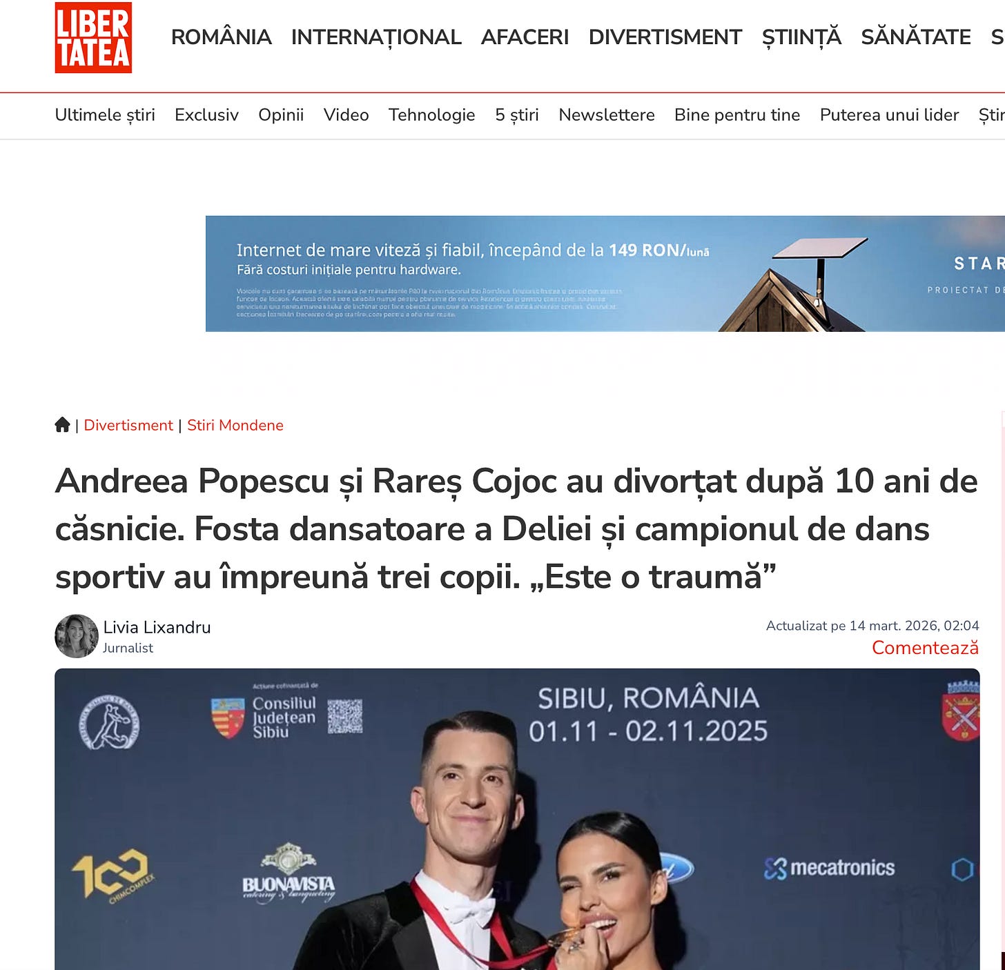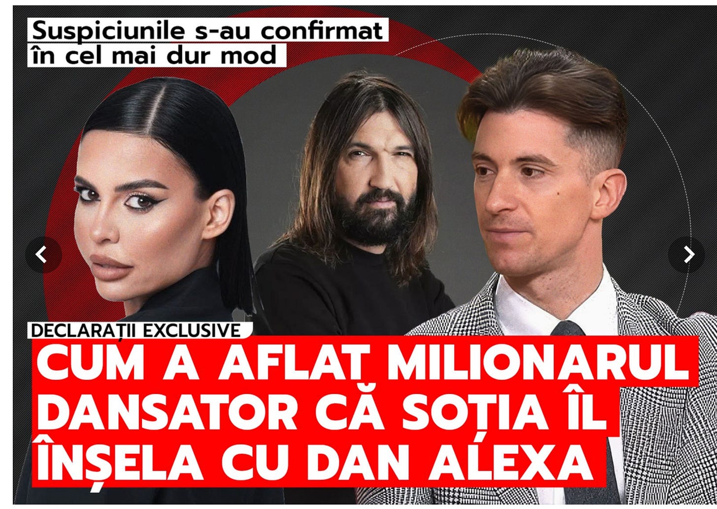 După aflarea veștii divorțului, probabil că el, rănit în amorul propriu, a dat drumul pe Cancan la diverse informații. De exemplu, asta: adică el, care o înșelase pe nevastă-sa cu partenera de dans, s-a supărat când a aflat că soțioara, apropo, și ea fostă dansatoare în trupa artistei Delia, s-a cordit cu Dan Alexa, ahahahahaha, un bad boy care i-a băgat tirbușonul doamnei până i-a dat șampania pe nas.