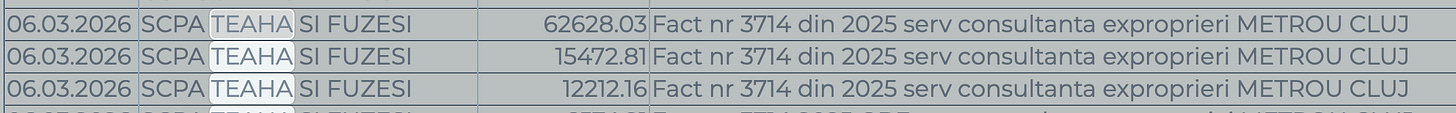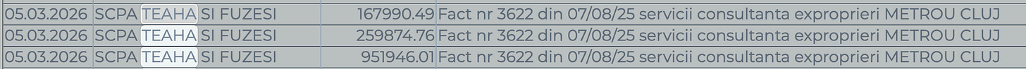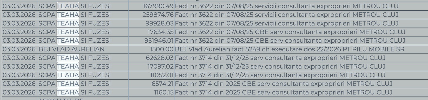 Bine că Boc stă mai mult decât bine la plata consultanților pentru exproprieri: societatea de avocatură Teaha și Füzesi a încasat numai la începutul acestei luni 3.000.000 de lei pentru servicii de consultanță pentru exproprieri la Metroul Cluj.