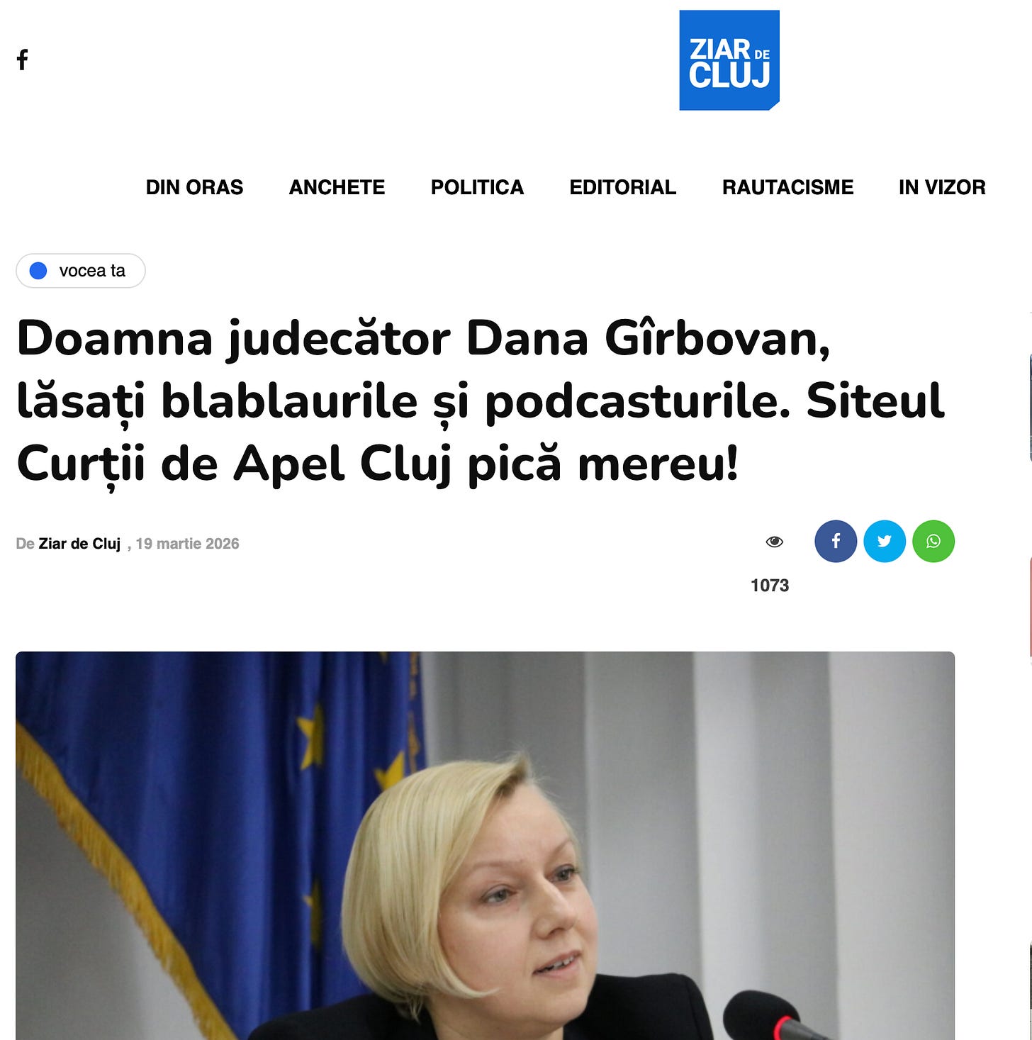 Totul a început pe 5 martie când, la Conferinţa de presă referitoare la prezentarea Raportului de activitate a Curţii de Apel Cluj pe anul 2025, pagina de internet a Curții de Apel Cluj era nefuncțională, conducerea fǎcându-se de toatǎ bafta de fațǎ cu presa.