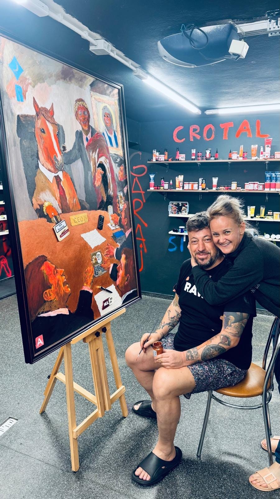 Asta e poza de la cinci dimineața. Distrus de oboseală după 53 de zile în care am stat în garaj să „confecționez” expoziția cea nouă. Fericit că am avut-o pe Mihaela alături mereu.