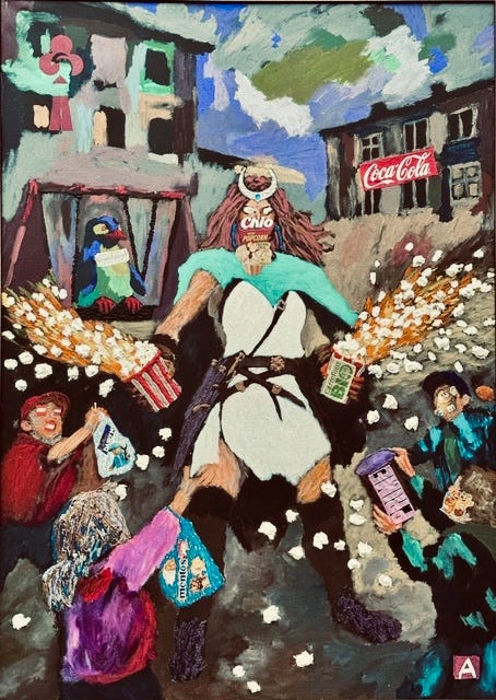 Drept răzbunare, Artemis s-a decis azi să se răzbune pe copiii noștri devenind un idol urban, un dealer de recompensă instantanee, ce și-a transformat tolba cu săgeți în cutii cu popcorn cu care îi „agață” pe cei cruzi și vulnerabili în jocul superficialității.