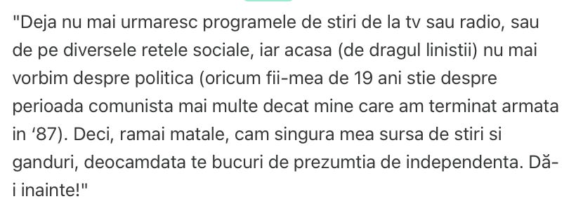 De aici, lucrurile nu vor fi decat tot mai bune. Deja sunt. Sunt nr. 1 pe Romania, peste toate substackurile semnate de autori romani, carora le tin pumnii sincer sa urce tot mai sus, caci se poate. Eram nr. 2, dar l-am depasit pe Valentin Bunea peste tot.
