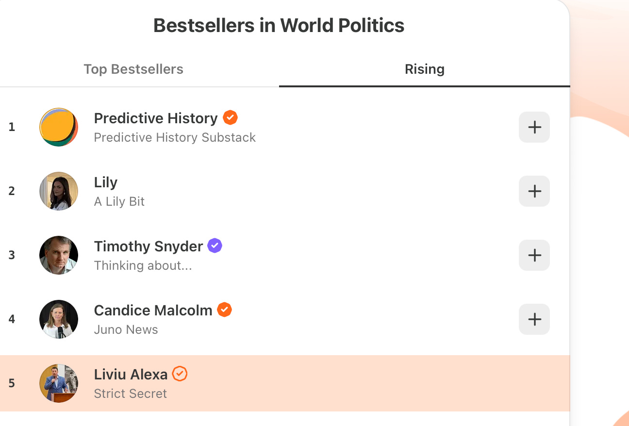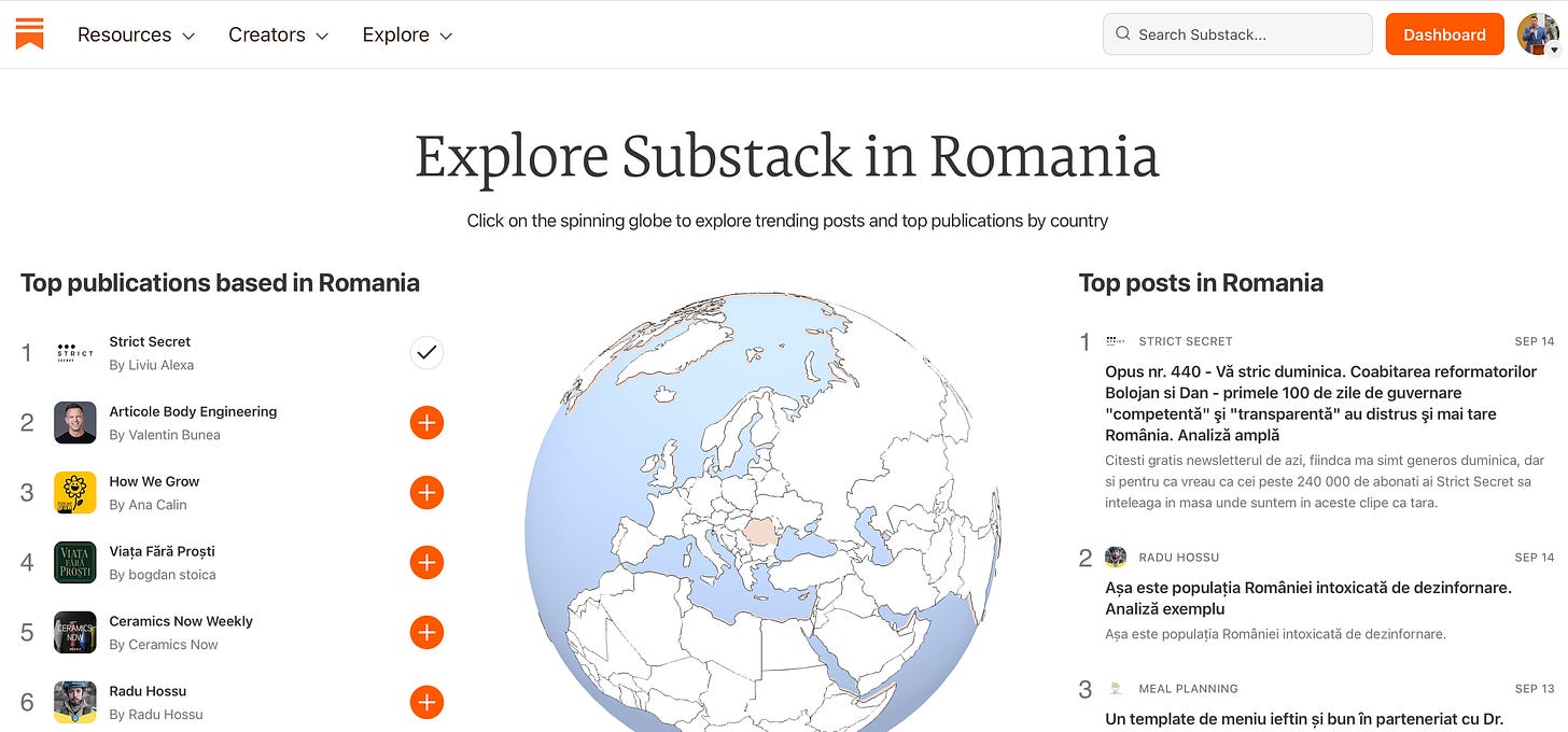 Strict Secret a ajuns Nr. 1 din România pe platforma Substack pe TOATE segmentele: audienta, abonati platitori si incasari.