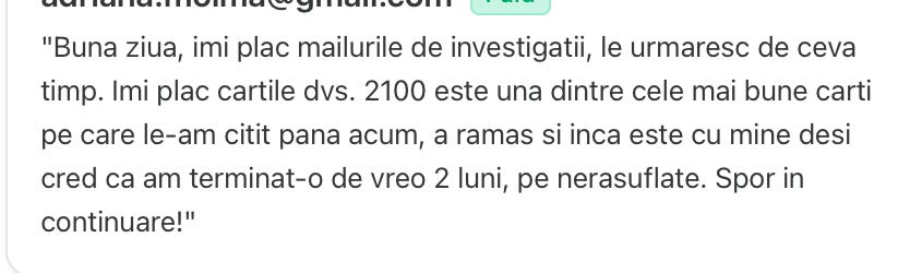 De dimineata, mi-a aparut o bubita portocalie pe ID-ul de Substack. Am muncit 3 ani pentru ea. Inseamna ca am intrat in liga mare a jurnalistilor si creatorilor de continut din lume care se “joaca” pe Substack. Adica inseamna ca am depasit 1000 de abonati platitori, ceea ce e imens, incredibil pentru Romania, neasteptat pentru mine.
